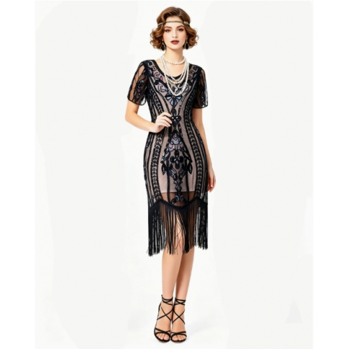 New Quality Explosive Tassel Woven Sequin Dress 1920S Retro European and American Movie Dress Skirt