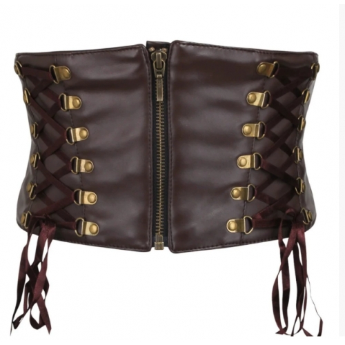 European and American steampunk shapewear hanging neck corset gather waist slimming retro gothic leather corset