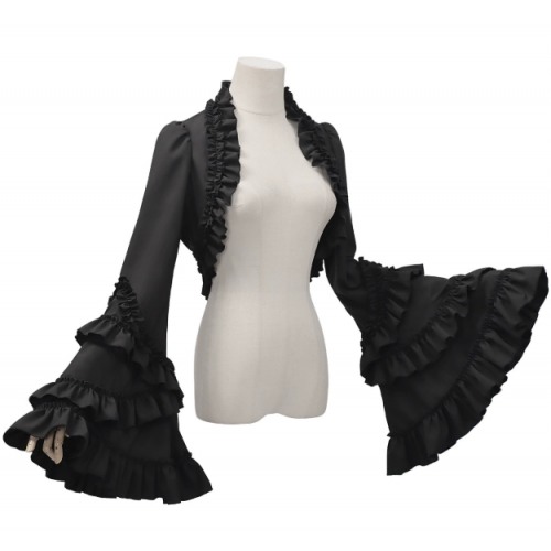 2026 New Arrival: Lolita Gothic Style Dark Slimming Halloween Outfit - Ruffled Long-Sleeved Top and Shawl