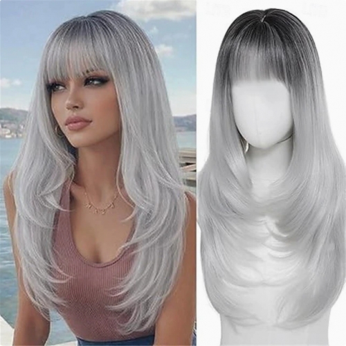 Short hair wigs are hot in Europe and America. Women's fashionable mixed color bangs synthetic headpiece wigs