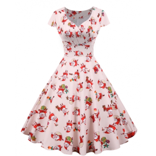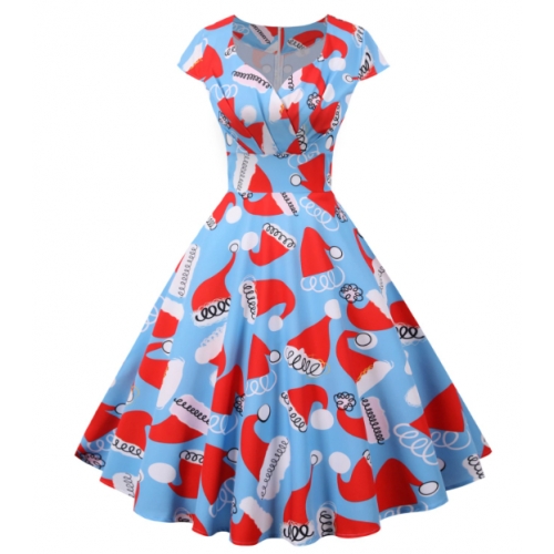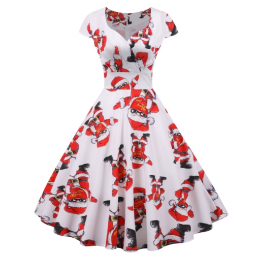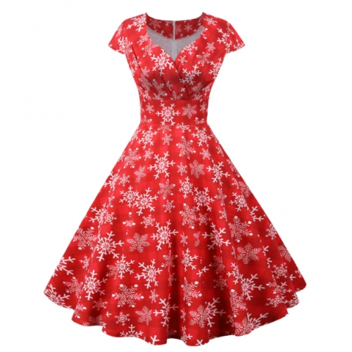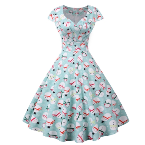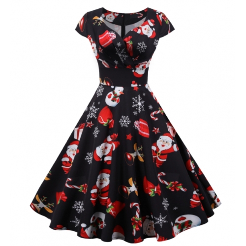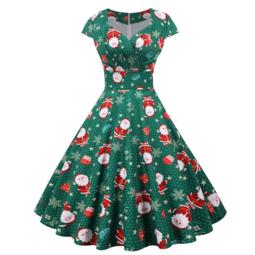 Home > Costume > Christmas Dresses > Christmas Outfit for Women, European and American Style, Square Neck, Padded Sleeves, Printed Retro Style, Full Skirt