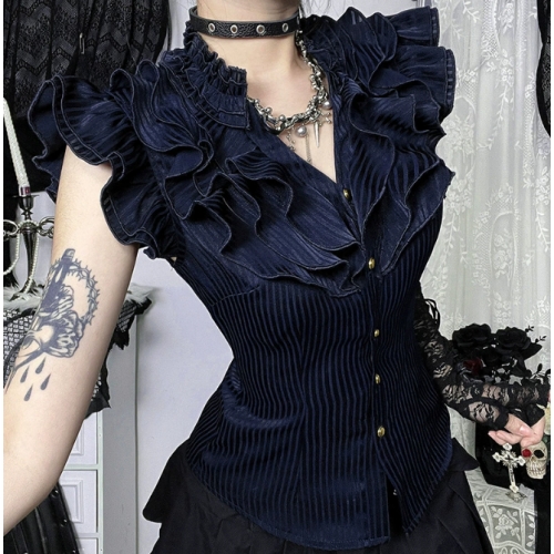 Dark Gothic V-neck shirt tops 2025 new sexy hot girl slim waist shirt for women