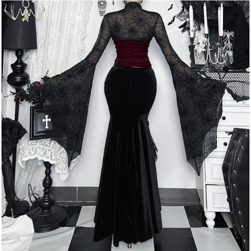 Dark flocked bat sleeve blouse 2025 new gothic style cos Halloween bat sleeve blouse