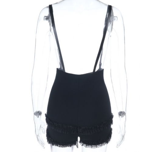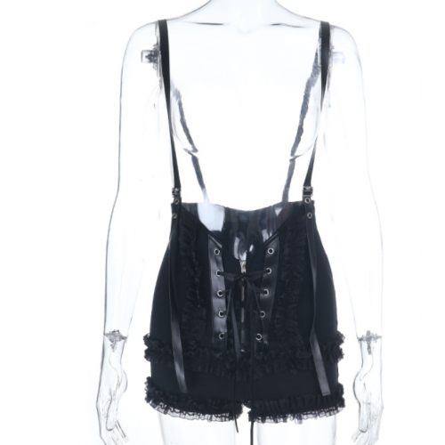 Dark-themed basic stretch bodycon overalls shorts, 2026 new gothic style trendy and versatile shorts.