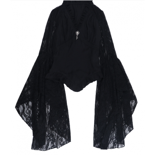 2024 new Halloween dark style temperament sexy slim lace blouse tops for women