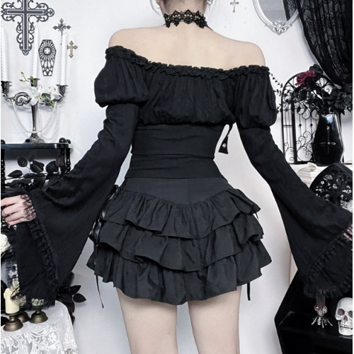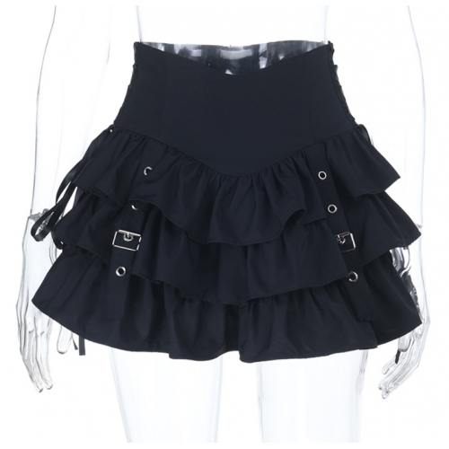 Dark-themed high-waisted tie-up cake skirt, 2025 new gothic style, Y2K, Asian girl black mini skirt