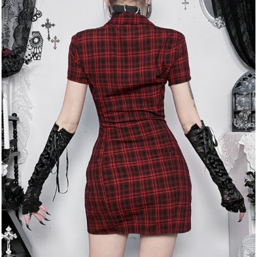 Dark-themed plaid shirt dress, 2026 new gothic style slim-fit retro punk short skirt for women.