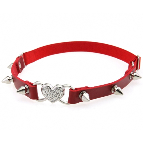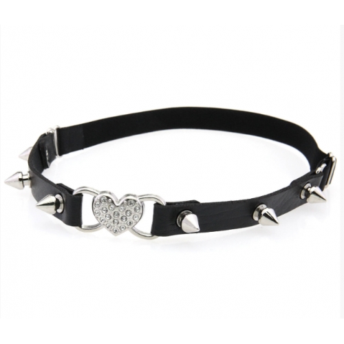 Elegant, sexy, beautiful, punk-style heart-shaped rhinestone studded leather thigh rings with pointed studs and heart-shaped elastic garter belt