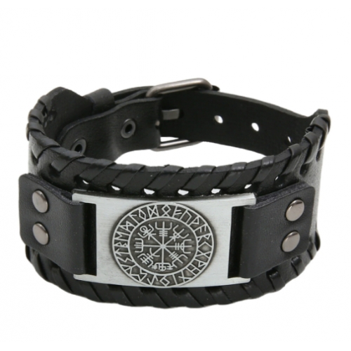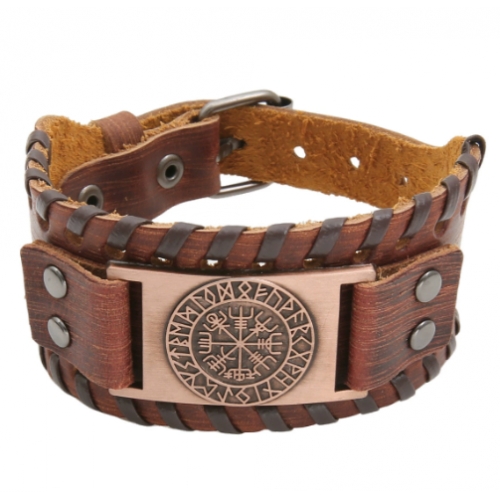 European and American hot selling medieval Viking pirate compass men's punk wide bracelet leather bracelet