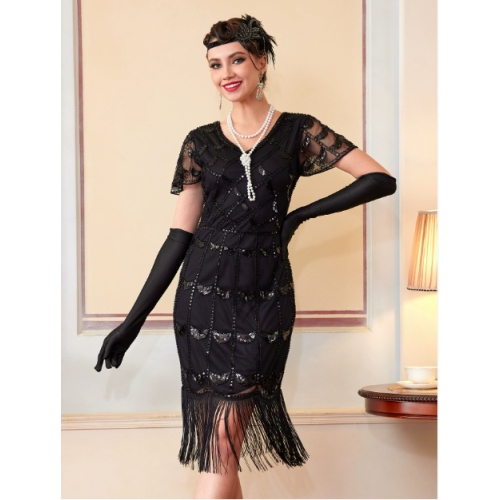 European and American popular plus size 1920 retro sequined dress with hand-beaded tassels, Gatsby dress
