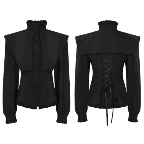 European and American punk pleated gothic shirt medieval clothing steampunk Victorian top retro