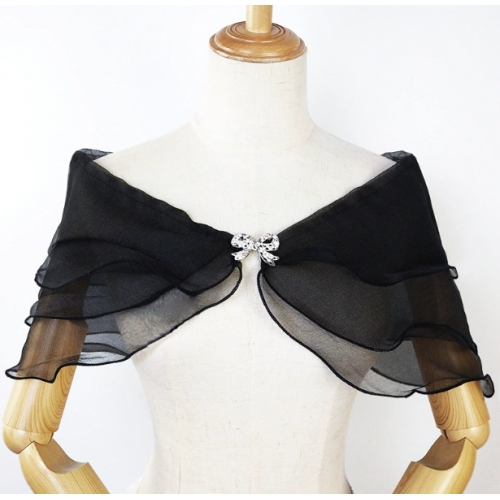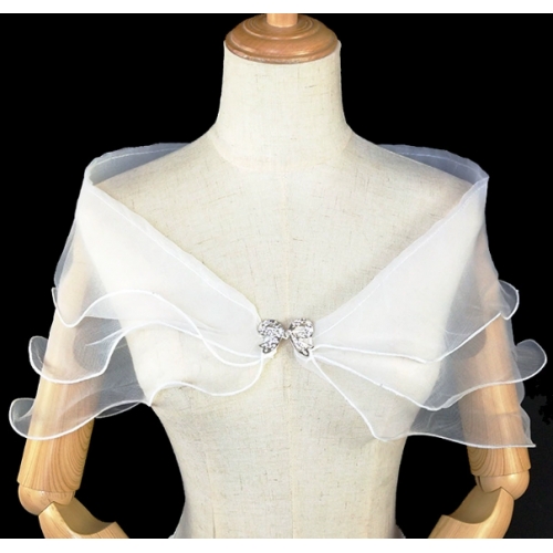 Home > Women'Clothes > Top&Blouse > short/sleeveless tops > European and American style bridal shawl, wedding dress, cheongsam, cape, three-layered seersucker, rolled hem, bow button, wedding dress, small shawl