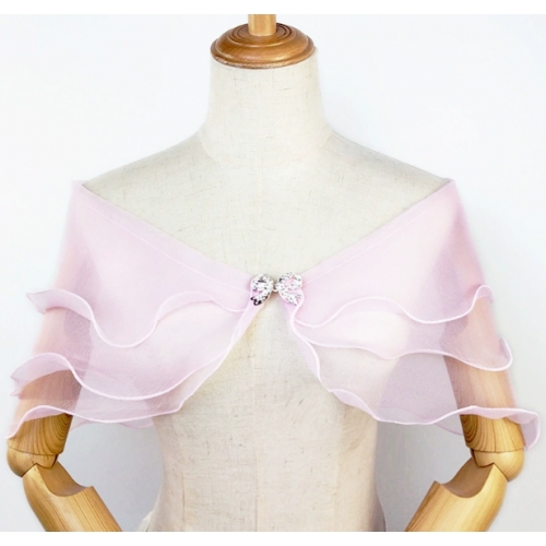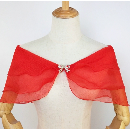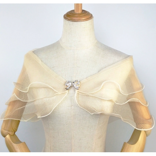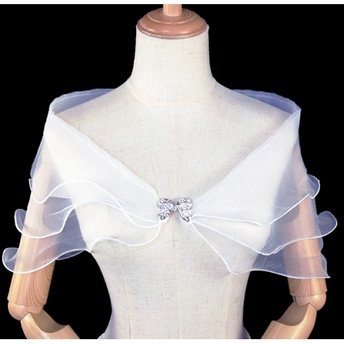 European and American style bridal shawl, wedding dress, cheongsam, cape, three-layered seersucker, rolled hem, bow button, wedding dress, small shawl