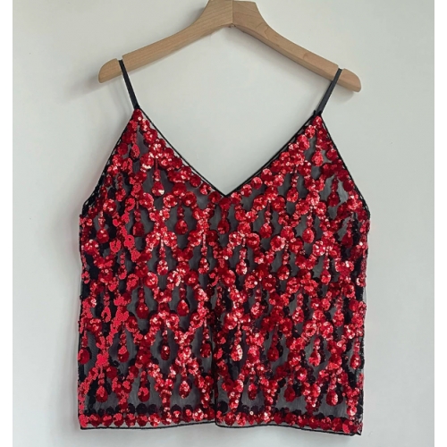 European and American style heavy sequined camisole V-neck new women's high-end vest, sexy inner and outer wear short sleeveless top