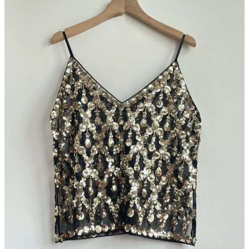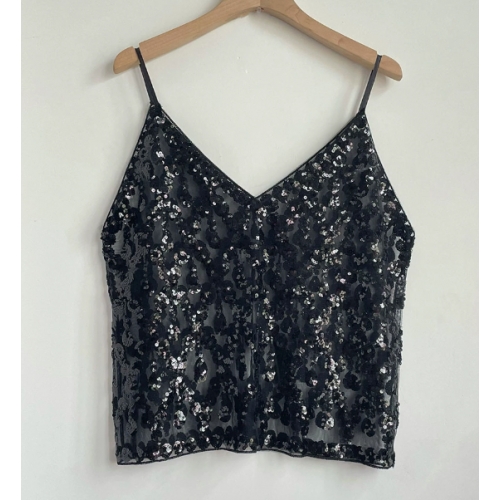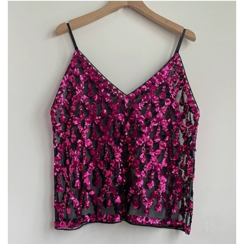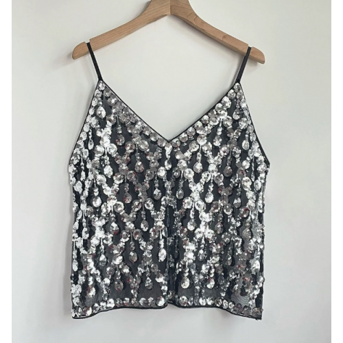 Home > Sequin series > European and American style heavy sequined camisole V-neck new women's high-end vest, sexy inner and outer wear short sleeveless top