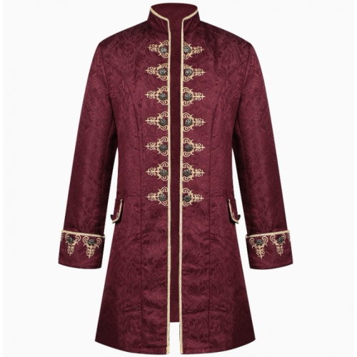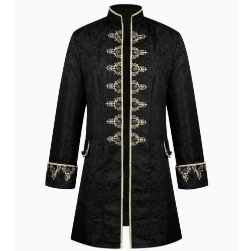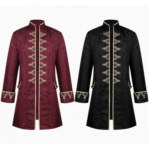 European and American style men's jacquard embroidered coat, solid color, fashionable steampunk retro stand-up collar stage uniform performance costume