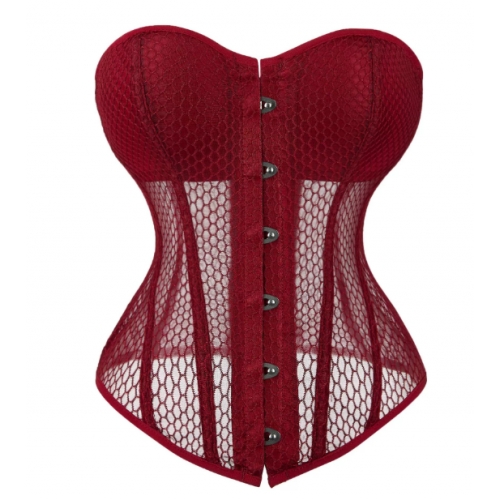 European and American style mesh court corset, breathable, tight-fitting, waist-cinching, women's bust-supporting, body-shaping top.
