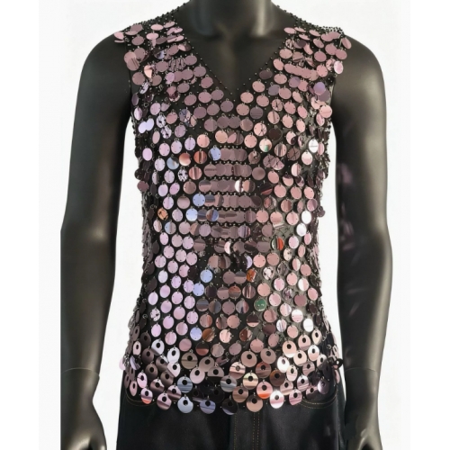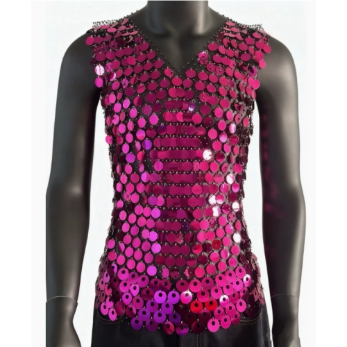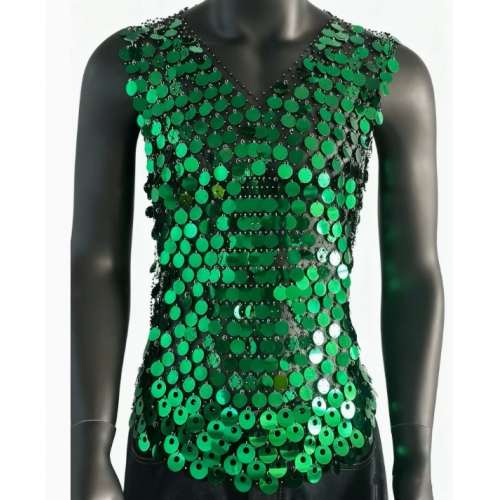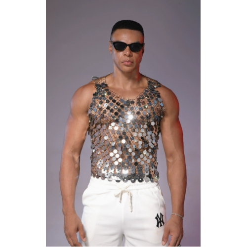 Home > Sequin series > European and American style sexy men's hollowed-out vest top with rhinestones, see-through design, nightclub party fishnet sequins