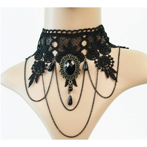 European and American style tassel pearl vintage necklace, black lace necklace, Halloween accessory