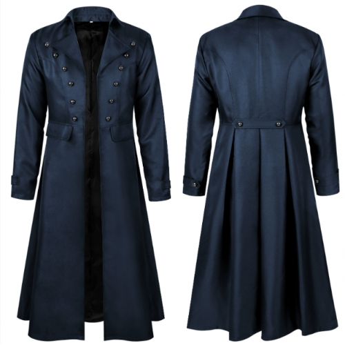 Halloween Amazon European and American style men's overcoat, solid color, fashionable steampunk retro men's uniform, stand-up collar clothing