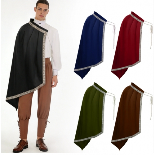 Halloween Men's Renaissance Shawl Half-Shoulder Cape Medieval Warrior Cape LARP Warrior Market Costume