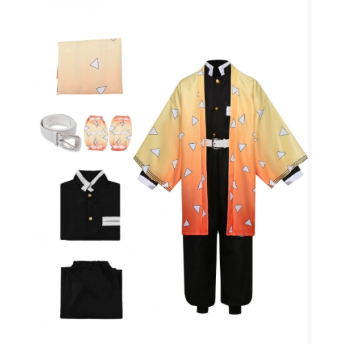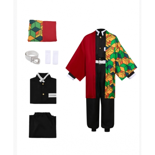 Halloween costume featuring Tanjiro Kamado, Nezuko Agatsuma, Zenitsu Agatsuma, and Giyu Tomioka from Demon Slayer.