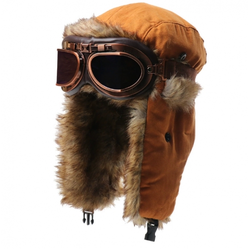 Harley-style suede goggles, Lei Feng hat, outdoor sports adult hat, retro classic windproof and warm hat.