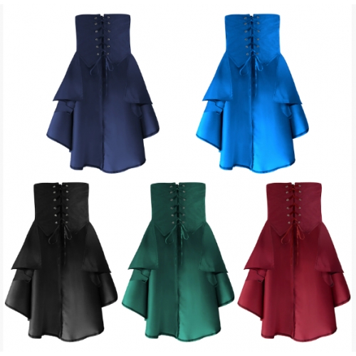 Hot sale Steampunk Renaissance Pirate Irregular Ruffle Lace-up Skirt