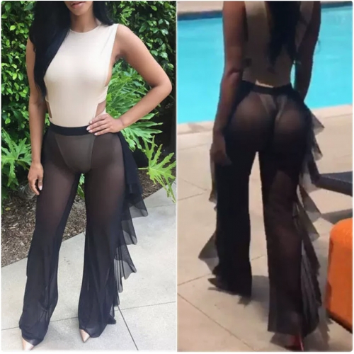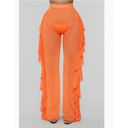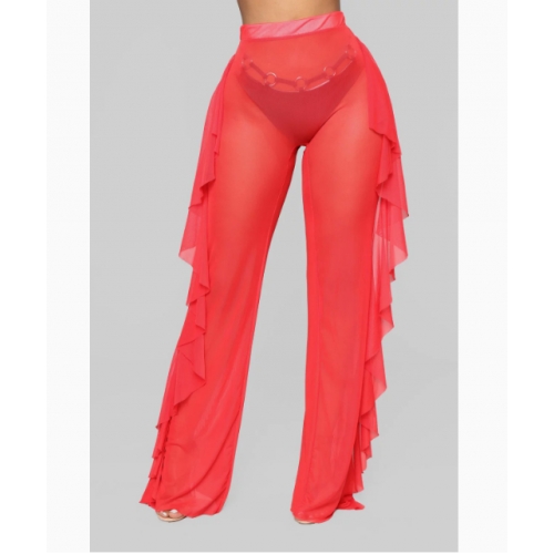 Hot-selling sexy see-through vacation ruffled trousers, 9 colors available.