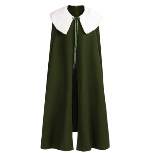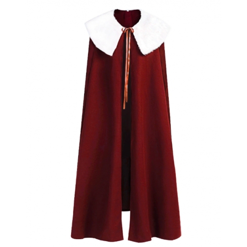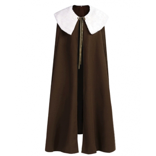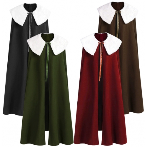 Medieval Halloween woolen wizard cloak, cosplay wizard knight robe with fur collar factory