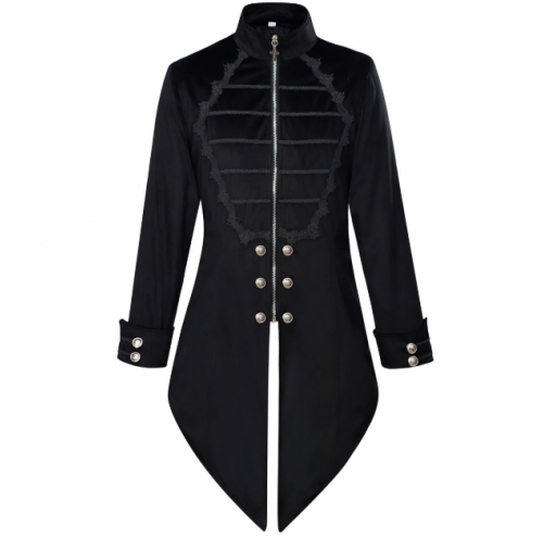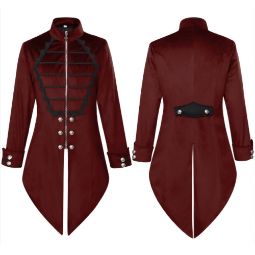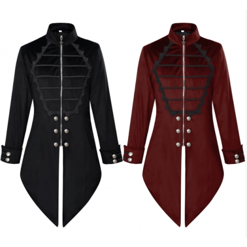 Medieval retro stand-up collar swallowtail coat, European and American style gothic top with dark pattern, Halloween vampire theme.