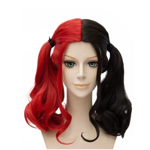 Movie Wig Suicide Squad Harley Quinn Cosplay Wig Double Braid Gradient Red and Blue