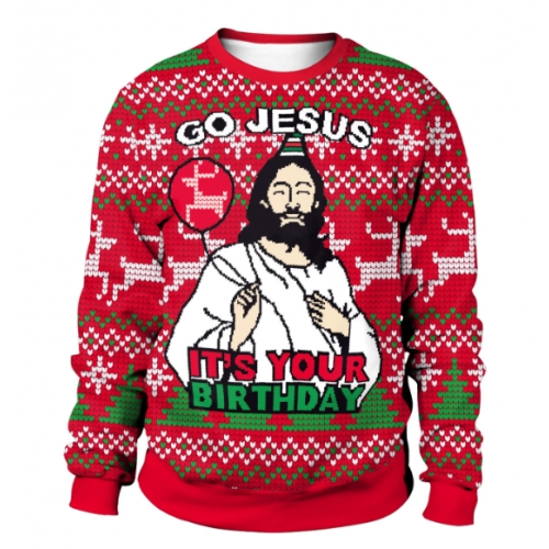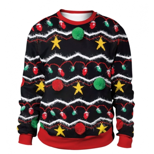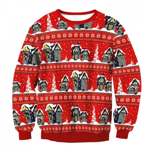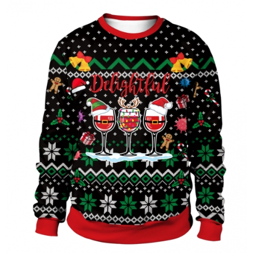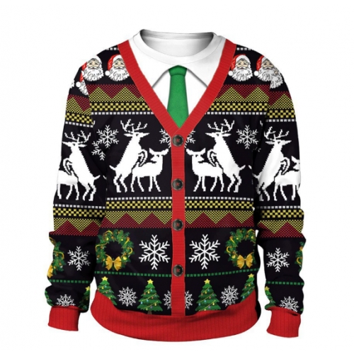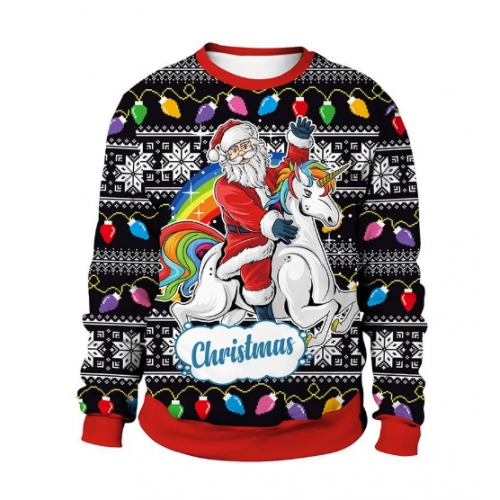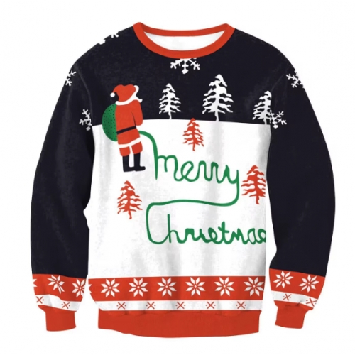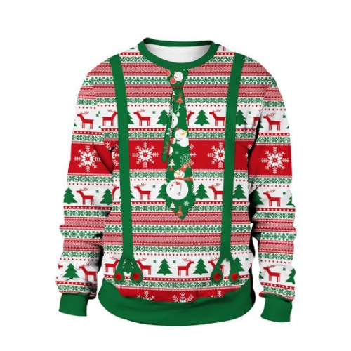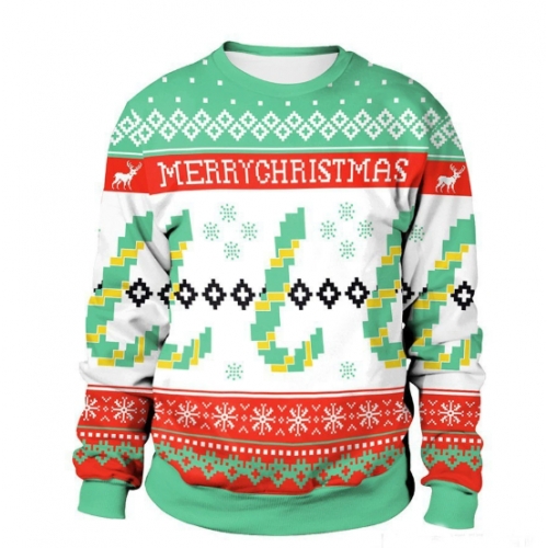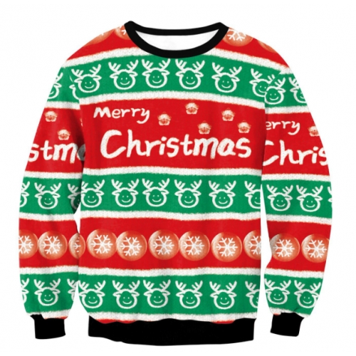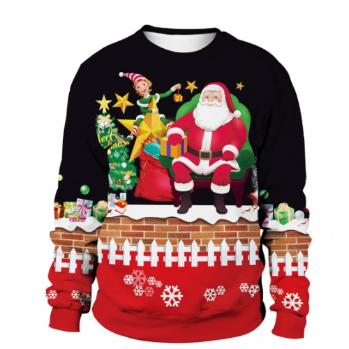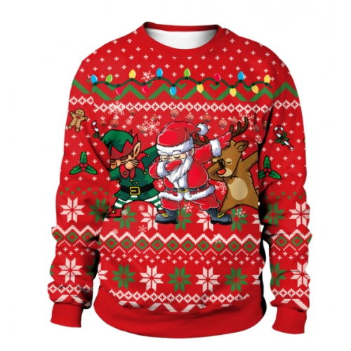 New 3D printed crew neck sweatshirt, unisex, cross-border style, Christmas couple outfit.