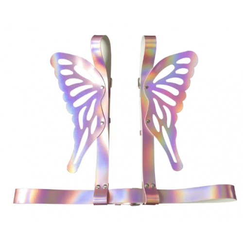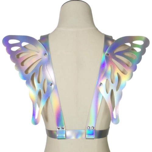 New European and American style PU leather angel butterfly wing suspender straps with laser seven-color reflective restraint body straps and shoulder straps