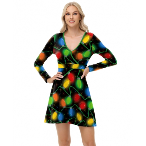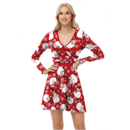 Home > Costume > Christmas Dresses > New European and American style sexy dress, Christmas dress, digital print V-neck autumn long-sleeved dress for women.