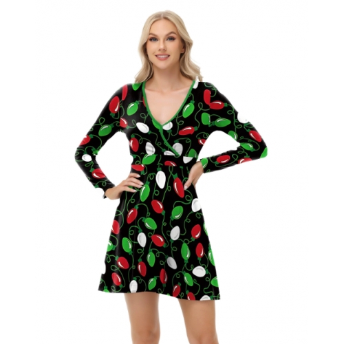 New European and American style sexy dress, Christmas dress, digital print V-neck autumn long-sleeved dress for women.