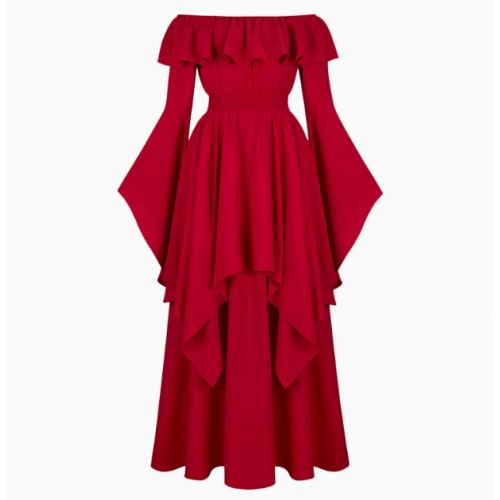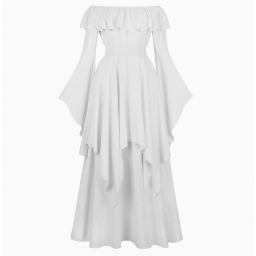 New Women's Dresses: Vintage Medieval Elastic Waist Dress, Renaissance Long Dress