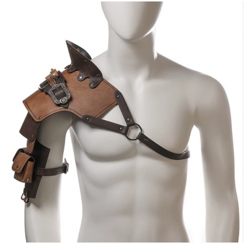 New medieval multi-layer leather one-shoulder Viking Renaissance cosplay leather armor shoulder armor prop waistcoat