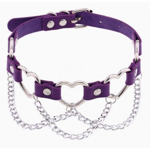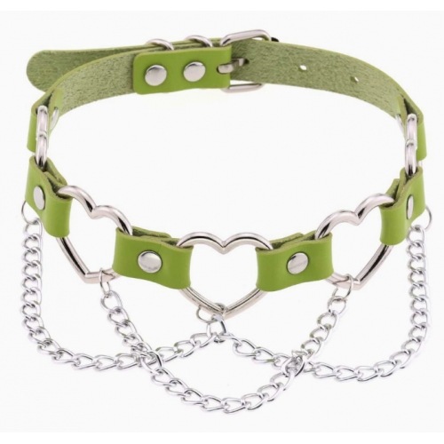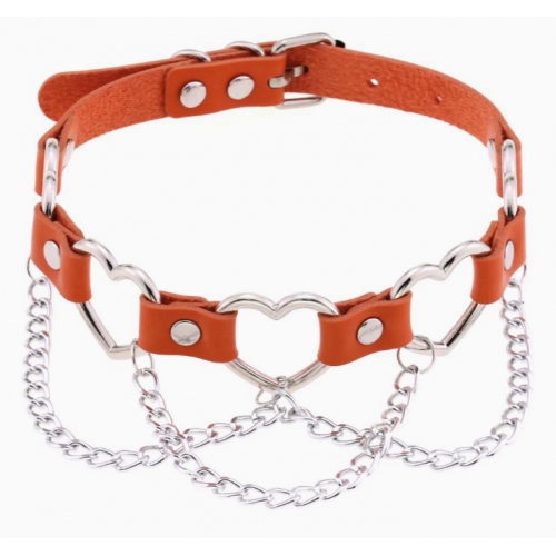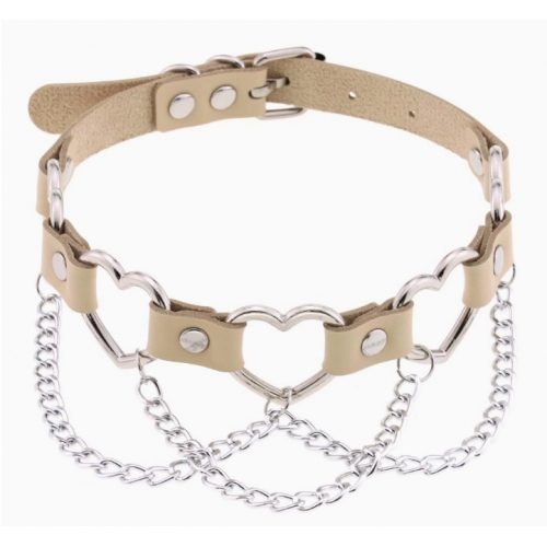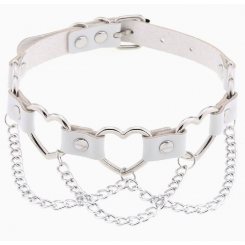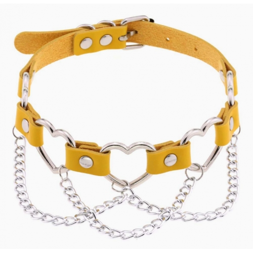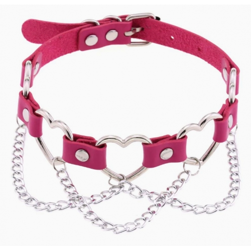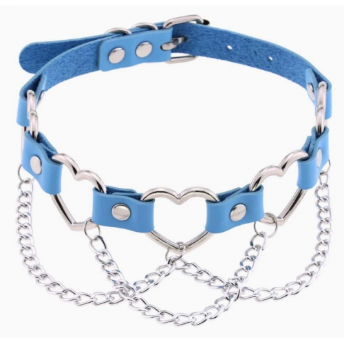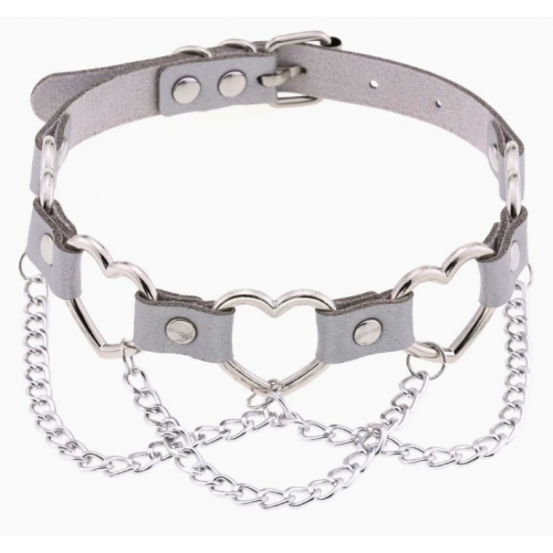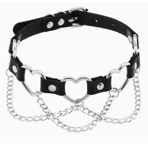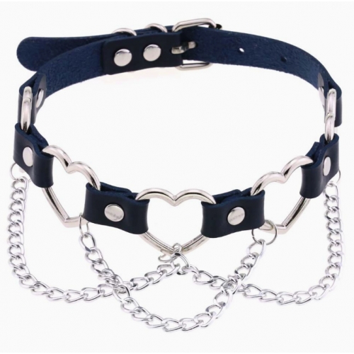 New punk street style linked heart chain clavicle chain choker with unique pin buckle leather necklace choker
