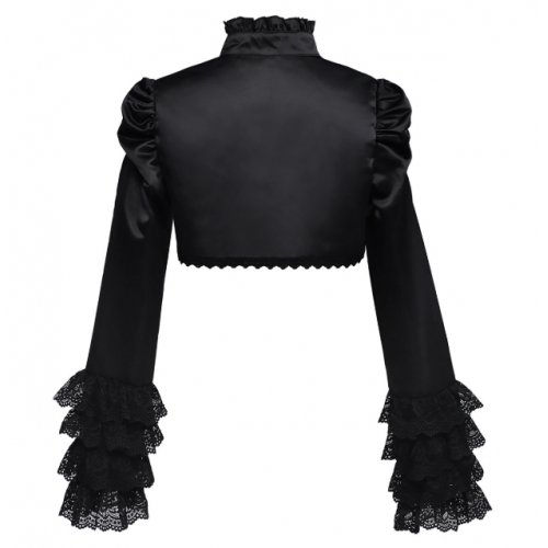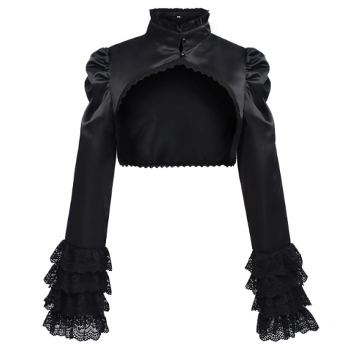Short-sleeved cardigan with unique lace trim, dark court style, high neck, long sleeves, performance costume