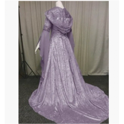 Simple medieval retro style wedding dress ladies solid color long-sleeved hooded waist dress