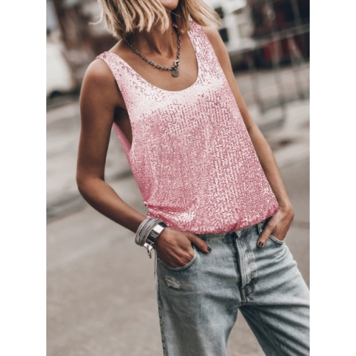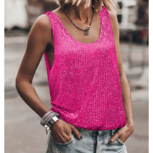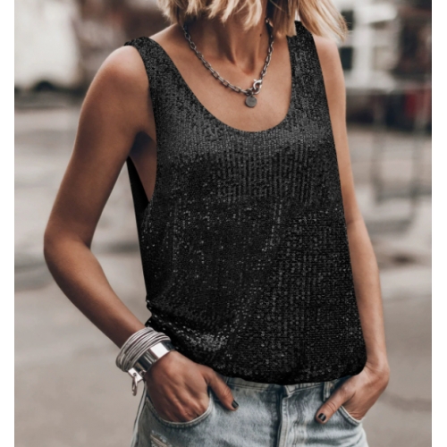 Home > Sequin series > Summer New European and American Cross-border Women's Fashionable and Unique Street Style Sequined Top Round Neck Sleeveless Loose Party Vest